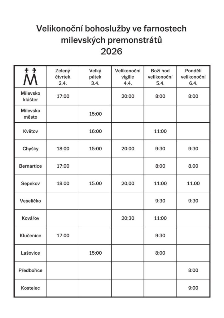 Požehnané a milostiplné prožití Velikonoc Vám ze srdce přejí premonstráti z Milevska.